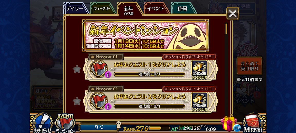 謹賀新年!期間限定のイベントミッションに挑戦しよう!