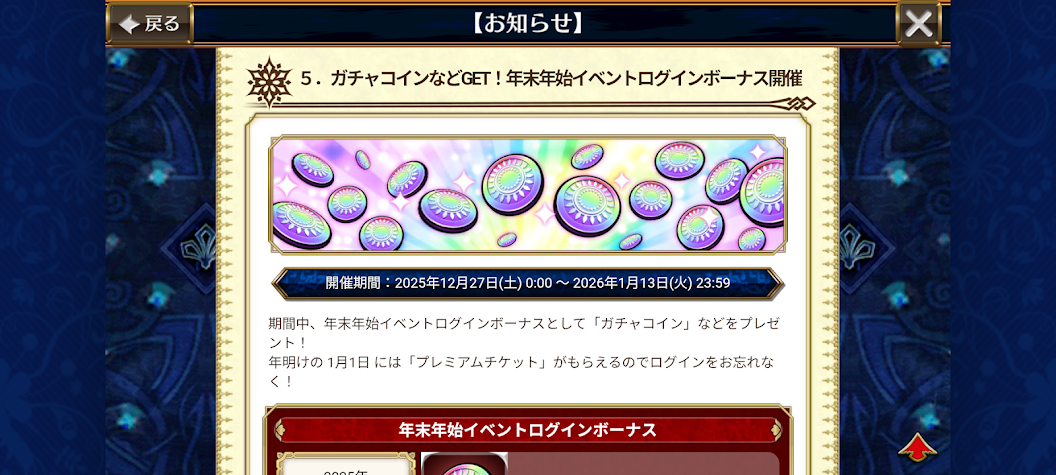 ガチャコインなどGET!年末年始ログインボーナス開催