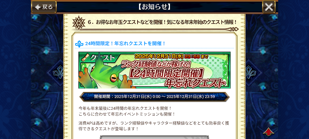 お得なお年玉クエストなどを開催!気になる年末年始のクエスト情報!