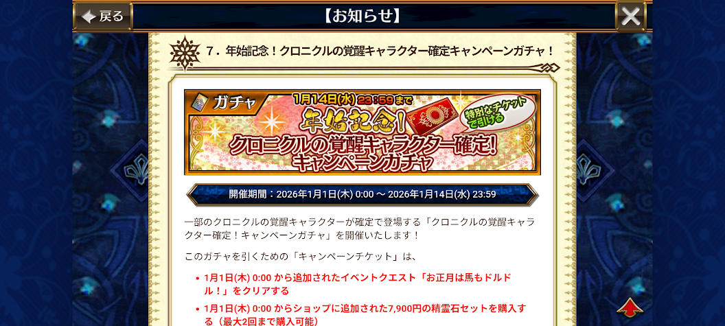 年始記念!クロニクルの覚醒キャラクター限定キャンペーンガチャ!