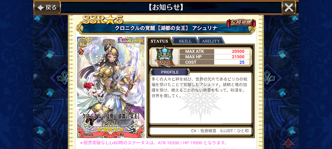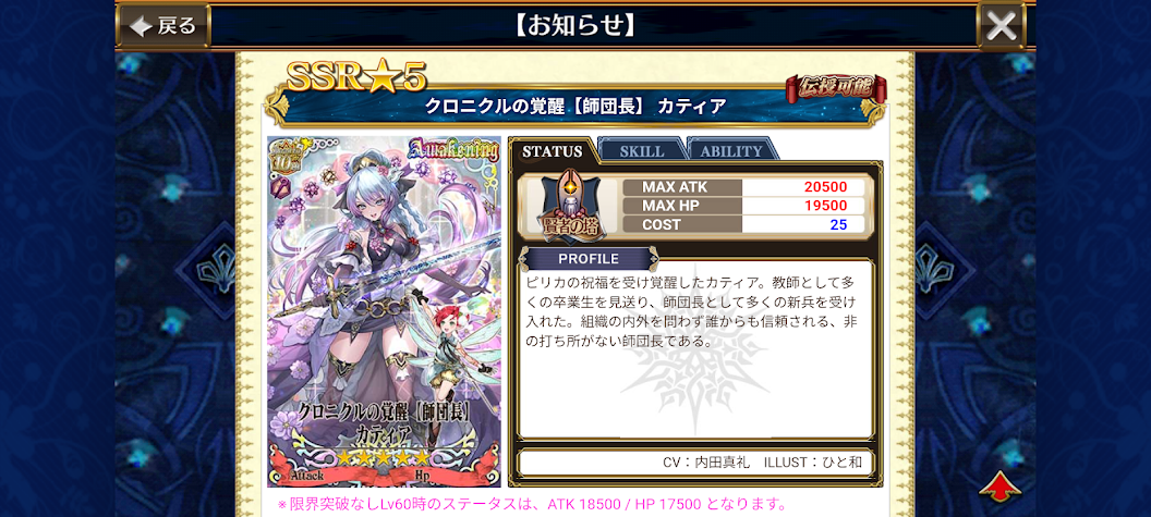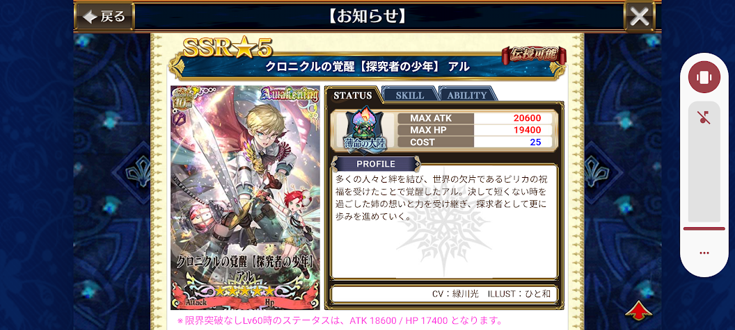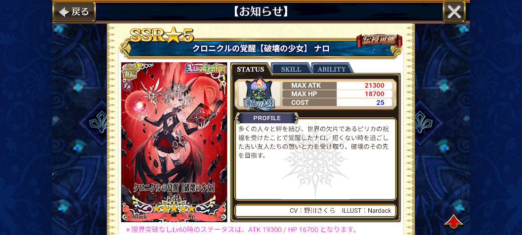 クロニクルの覚醒キャラクターはピリカが一緒に描かれているカードです。ユグド世界の各所属1~2名が実装されています。