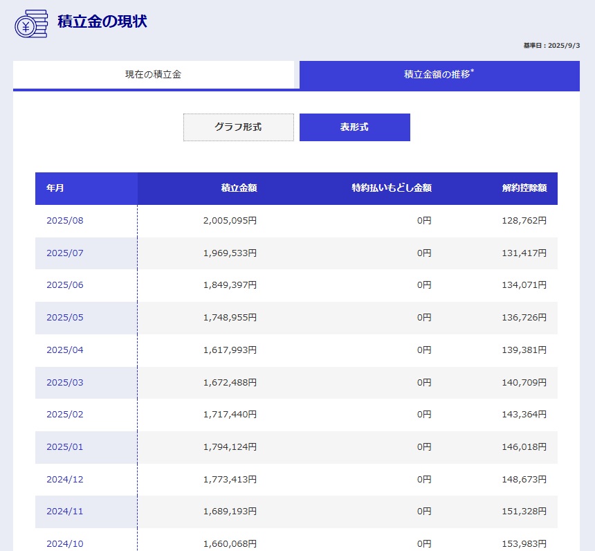 こちらは積立金現状の表です。ここで気にしたいのが解約控除金です。